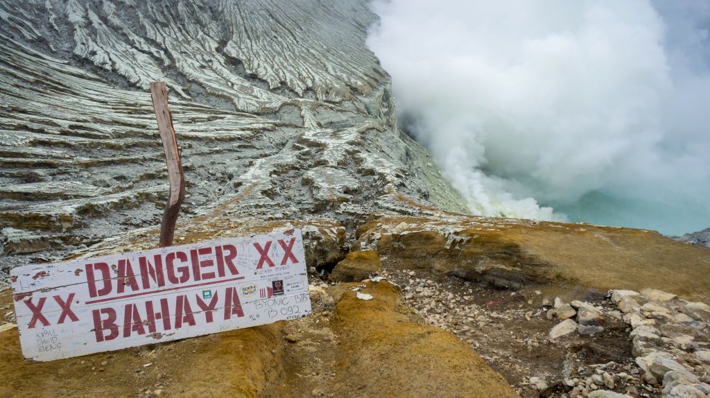 On the island of Java sulfur miners risk their lives for the “devil’s gold. They descend into the bowels of an inactive volcano to chip chunks of sulfur off stalactites, taking great care to avoid toxic yellow gases and electric blue flames.