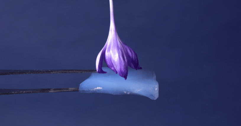 A gel is a bit of an oddball as it is made up of mainly liquid but behaves like a solid. A cross-linking system within the fluid of the gel gives it structure and firmness. When liquid molecules are successfully removed, and gas molecules take their place, the gel remains solid and maintains its shape. It is now an aerogel!